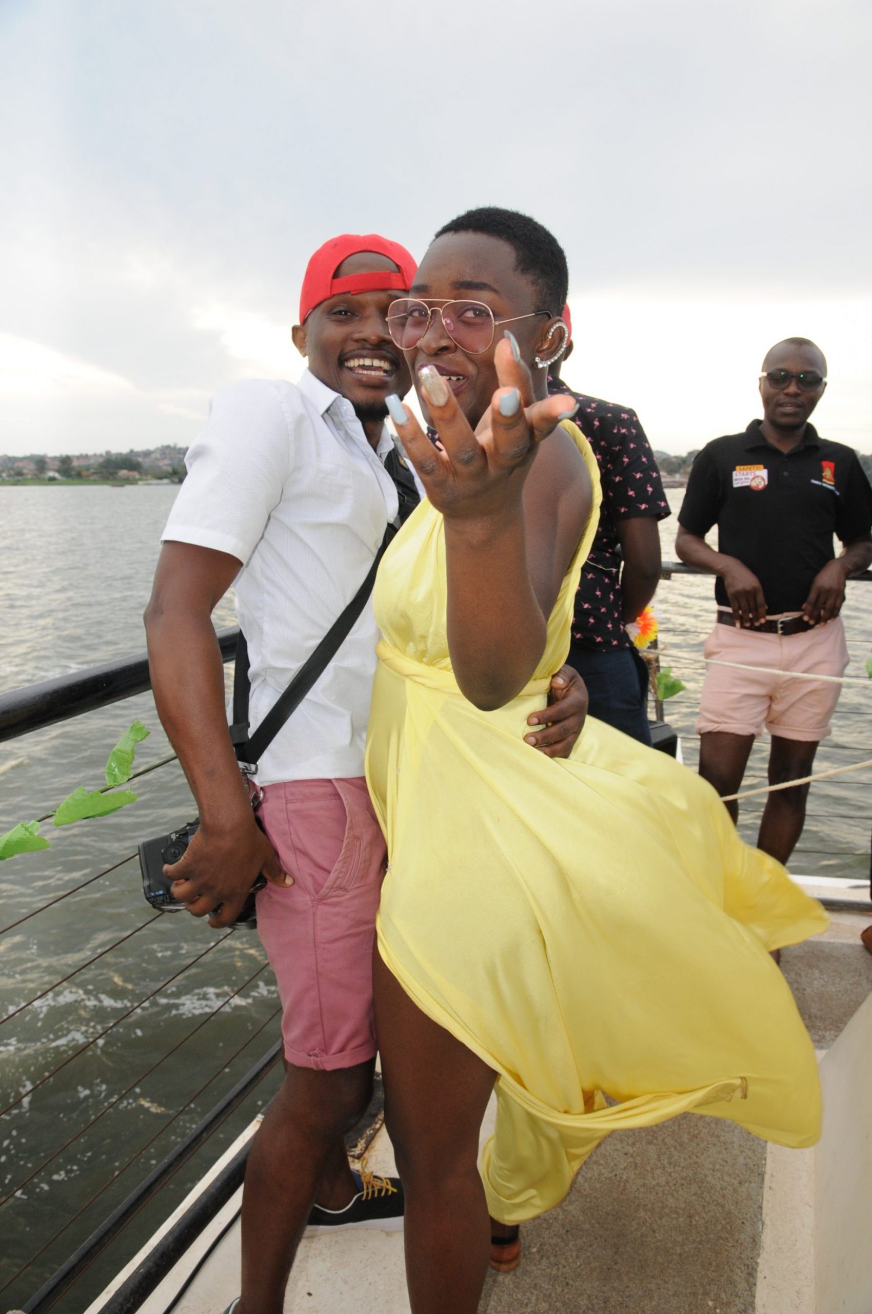 The EarthWise boat, docked at Port Bell pier, was dapped in sunflower, pineapples and sunny colors ready for the cruise by midday. A mixologist stood at the foot of the boat to welcome the cruisers with a host of free-flowing cocktails. It was a beautiful sunny day that would turn into a beautiful Pineapple evening. But not everyone was prepared for the ride, some first time cruisers were treated to a rude awakening when they learnt that the fun on the cruise also comes with a bit of bounce served by the strong water waves on the lake.