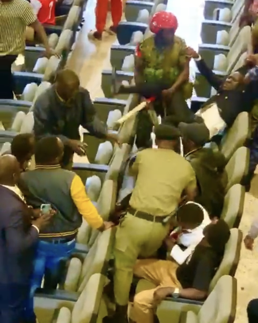 To break the impasse, police and the military that had been deployed in their numbers, stormed the Auditorium of the Prof. Yusuf Kironde Lule building where the meeting was taking place and violently dragged out everybody who was shouting.
