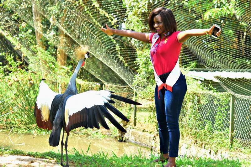 Miss Tourism Uganda, Eldad Epiaka Odongkara on Wednesday visited Uganda Wildlife Education Centre (UWEC), Entebbe and had quite a good time with Uganda’s symbolic Crested Crane.