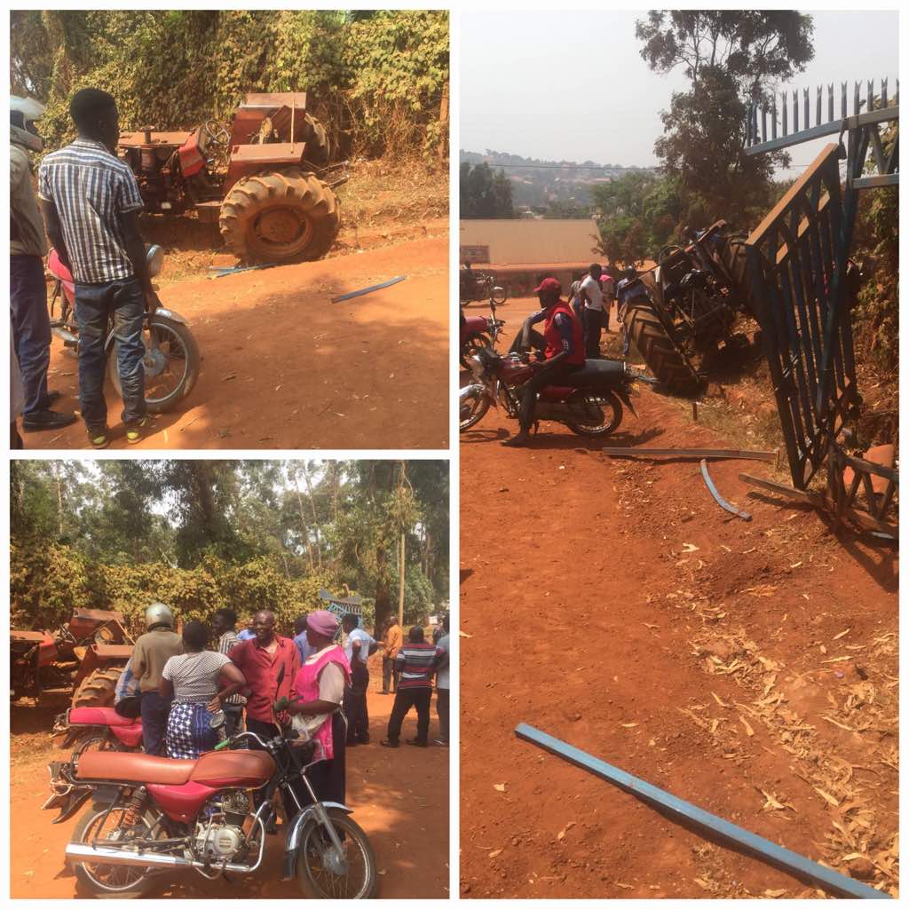 A construction tractor that was parked at Uganda Christian University (UCU), on a slope towards the university technology park has knocked down the gate.